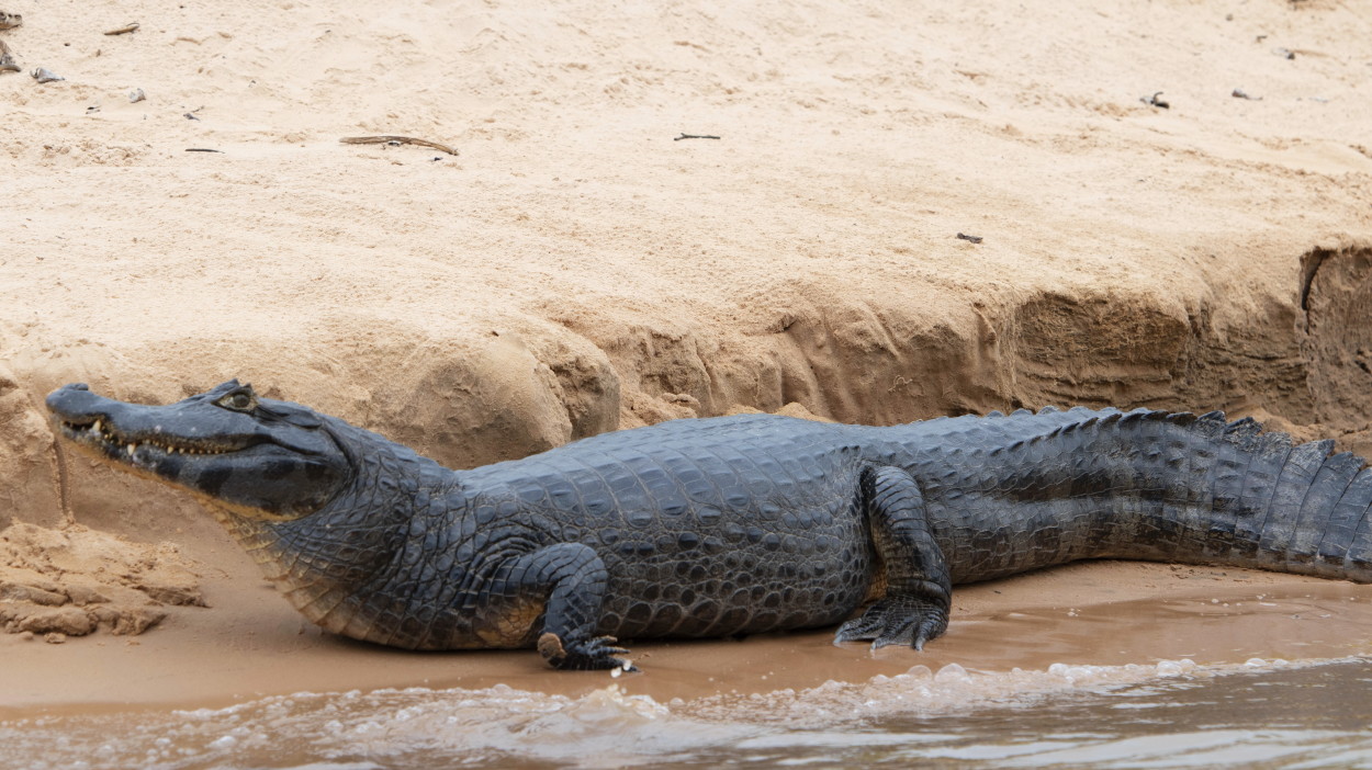 Отступившая вода обнажила песочные пляжи, которые облюбовали кайманы. Они отдыхают, греясь в лучах утреннего солнца, а набравшись энергии, отправляются на поиски пищи, благо в это время года ее предостаточно.