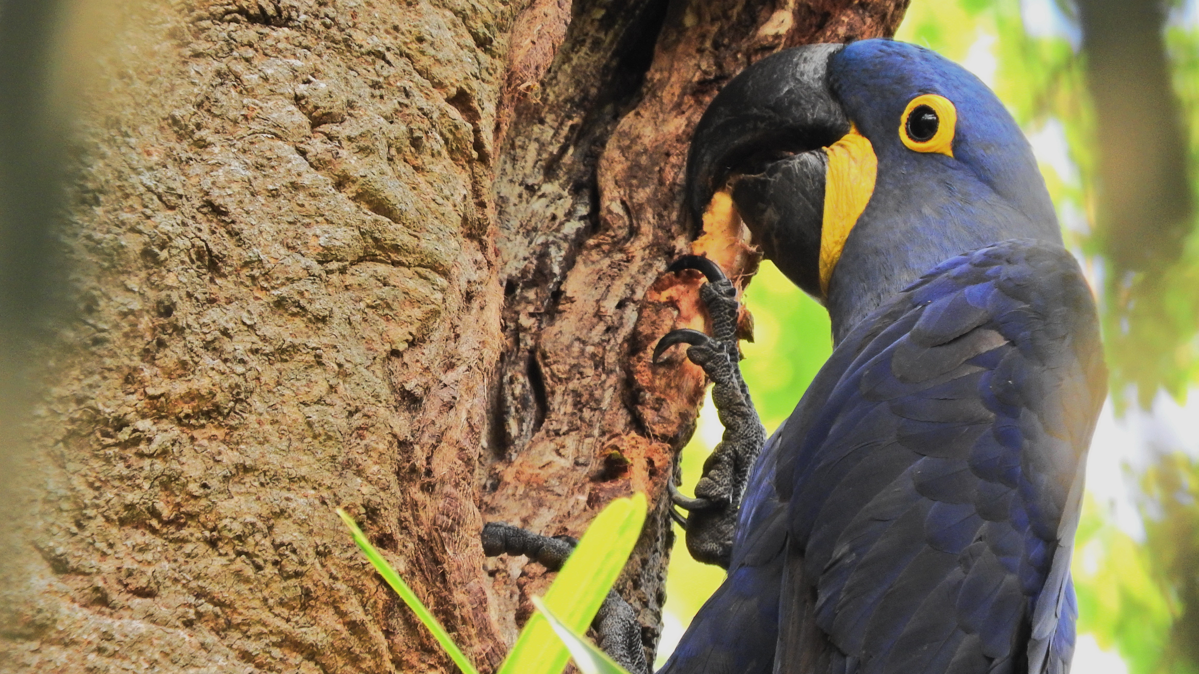 А рядом, в тенистой листве пальмовых зарослей, прячется самый большой попугай – гиацинтовый ара. Длина взрослого самца может достигать одного метра, а размах крыльев восьмидесяти сантиметров. Эти грациозные птицы предпочитают гнездиться в дуплах высоких деревьев, часто расширяя и углубляя их своим мощным клювом.