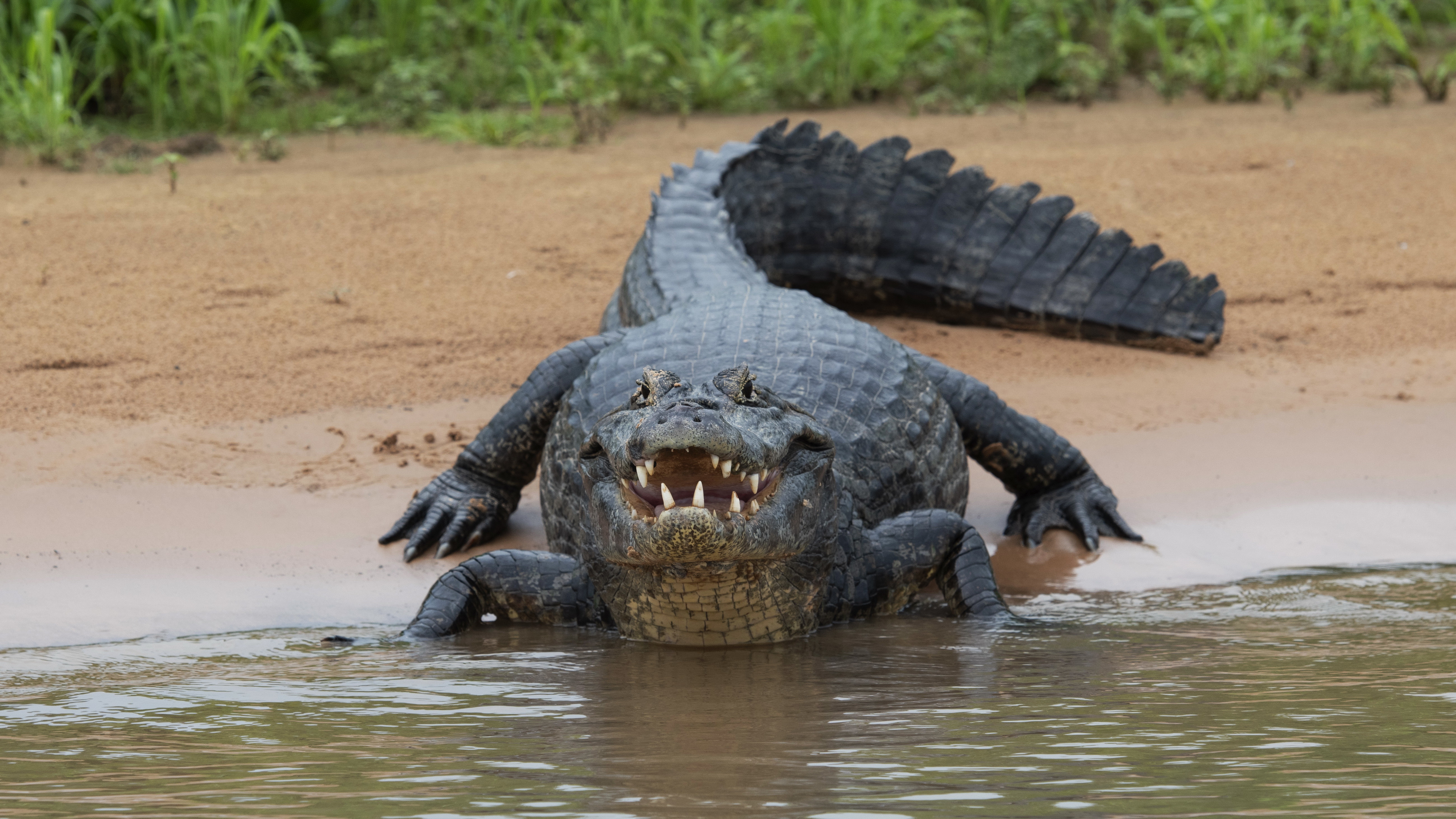 Потрясающе красивая окраска, мускулистое тело и самые мощные челюсти среди больших кошек, которые позволяют ему справиться со смертельным врагом – кайманом. Все это сделало ягуара настоящим правителем в царстве Пантанала.