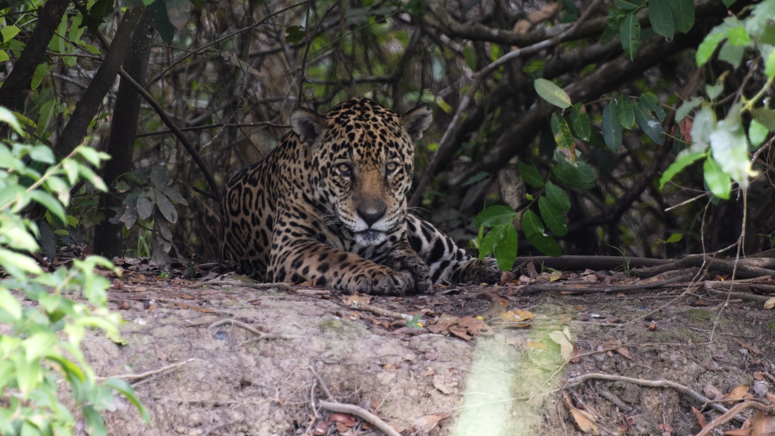 Среди местных жителей ходит поверье, что ягуар может гипнотизировать свою жертву. Не знаем насколько это соответствует действительности, но мы ощутили его пронизывающий взгляд, когда он посмотрел в нашу камеру.