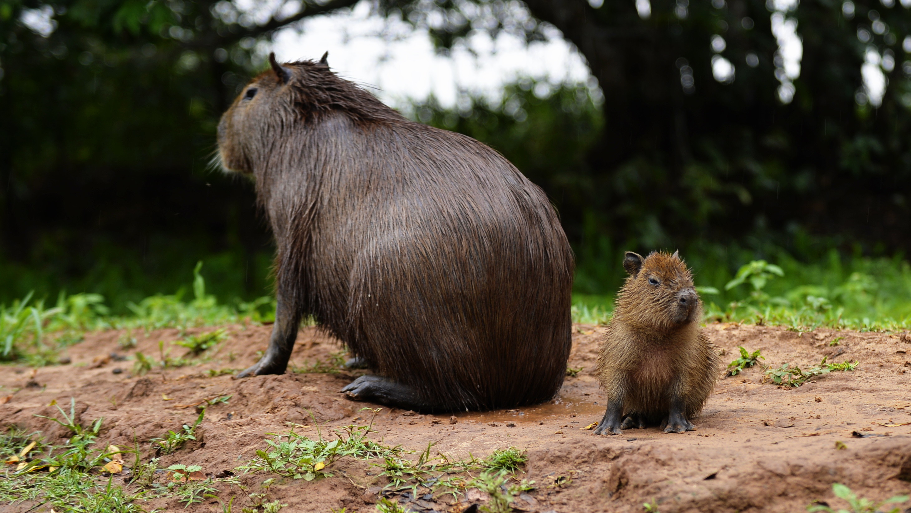 Они очень заботливые мамы, сообща выкармливают и растят своих детенышей. Капибары всегда на чеку, ведь их малыши очень уязвимы и часто становятся легкой добычей для ягуаров, кайманов и анаконд.